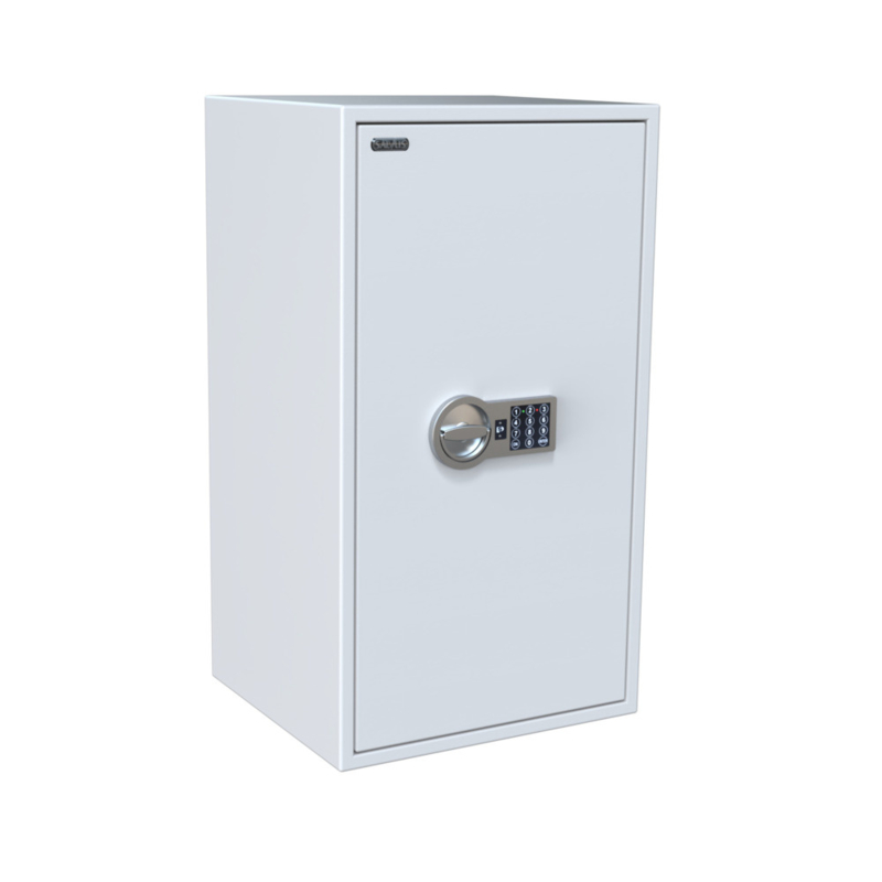 Der Salvus Monza 4 ist ein kleiner einbruchhemmender Tresor mit maximalem Schutz im kompakten Format. Das hellgraue RAL 7035 Design fügt sich unauffällig in jede Einrichtung ein. Das dreiseitige Verriegelungssystem und die stabile Konstruktion gewährleisten, dass Ihre Dokumente, Schmuck oder Bargeld sicher bleiben.