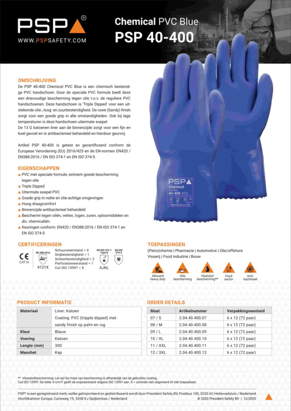 Guantes de trabajo resistentes a productos químicos PSP 40-400 Chemical PVC Blue 30 cm