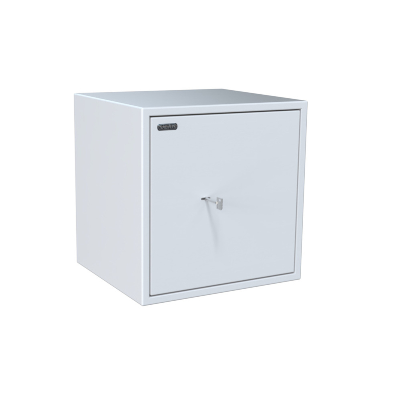 La Salvus Monza 2 es una caja fuerte segura para hogar y oficina con más espacio de almacenamiento. Su acabado gris claro (RAL 7035) se integra discretamente en cualquier interior.